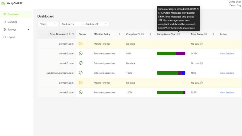 VerifyDMARC offers a core set of features designed to help organizations implement and monitor DMARC. This includes granular reporting on email authentication results, allowing users to identify legitimate and fraudulent email sources.